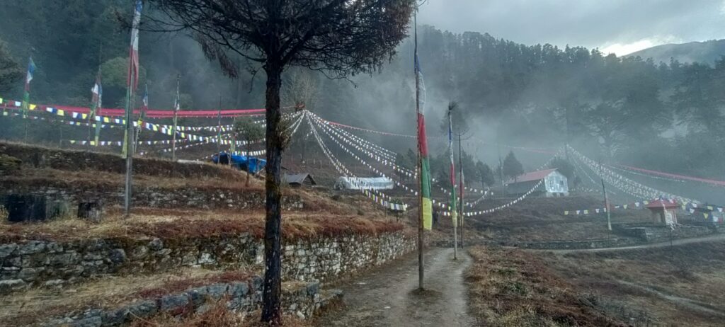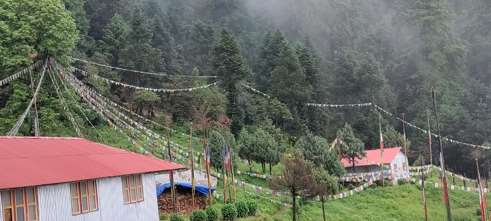 Nestled in a forest clearing presided over by a mountain named for the protector goddess Ama Yangri of Yolmo (the indigenous name for Helambu, an area in the southern reaches of the Nepalese Himalaya), it is a meditation retreat in the truest sense. Accessible only by a long up-hill walk—one rendered additionally challenging in the monsoon season by hoards of leeches that leap onto intrepid wanderers like miniature, heat-seeking paratroopers, seeking to infiltrate themselves between wet clothes and skin—it has served as a haven for serious practitioners since its inception.